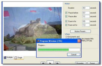 Photo to Movie añade además un efecto de movimiento a cada imagen mediante el cual puedes hacer una especie de zoom centrándote en la zona de la foto que te parezca más importante para luego pasar a la siguiente imagen con un suave difuminado.
